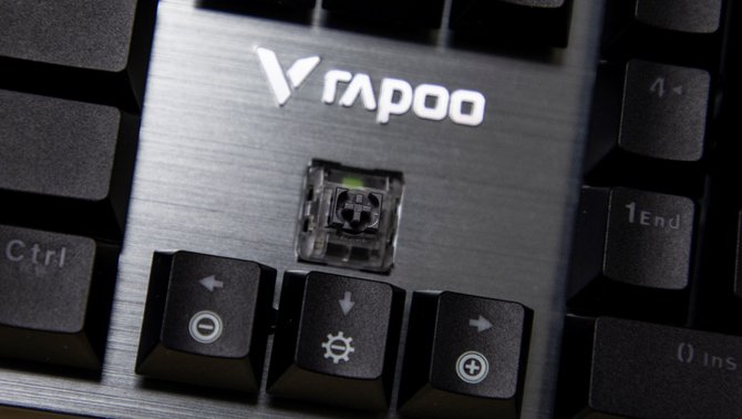 轴体方面的话,雷柏这款机械键盘采用了雷柏自主研发的银轴,这款轴的的实际使用感受和我们常见的Cherry青轴比较像,段落感明显,咔哒咔哒的声音也会立刻让人知道这是一款机械键盘。