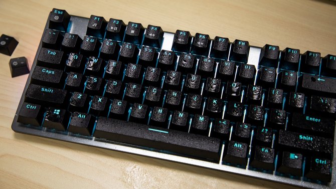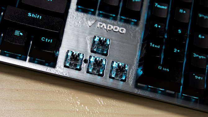 轴体的话,雷柏自主的红外银轴采用纯红外光阻断式导通原理,型号的传输更为稳定,同时这样的结构,让这款机械键盘无惧水的侵扰,即便是在水中,也能够正常的进行工作。
