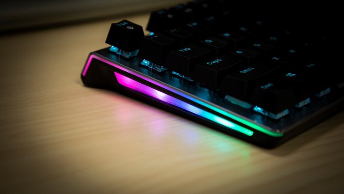 另外,键盘的两侧还有RGB灯带,看上非常的酷炫。