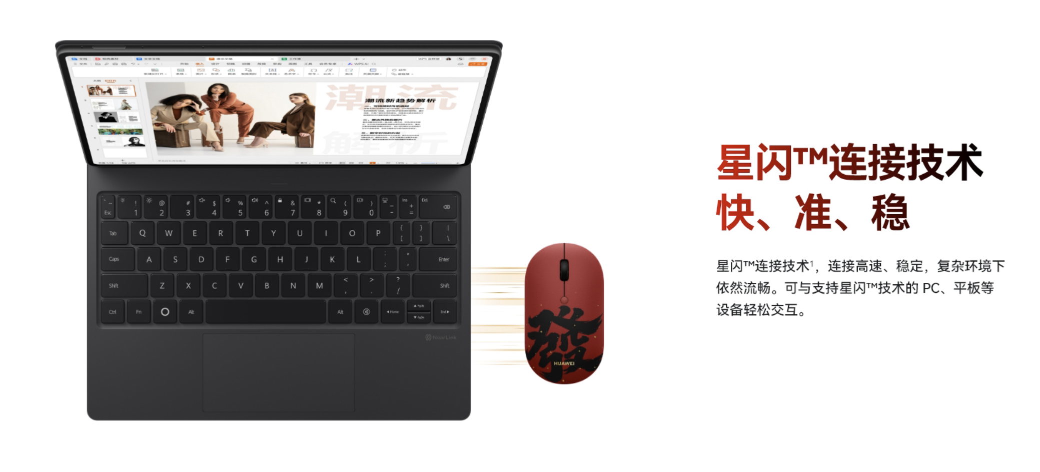 性能方面,这款鼠标搭载华为星闪无线通信技术,相较传统无线连接方式,具备更低延迟、更强抗干扰能力与更稳定的传输表现。借助星闪技术的短帧传输与极化码编码优势,即便在办公室、高铁站等无线设备密集的复杂环境中,也能避免断联、卡顿问题,为用户带来流畅的操作体验。同时,产品支持3台设备同时连接,通过底部专属切换按键,可实现PC、平板、手机等设备间的快速切换,无需重复配对,大幅提升多设备办公效率。