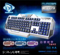 宜博E-3LUE是以蓝色冷光色调为主题的一款游戏键鼠套装,外形霸气炫酷,整体风格非常独特,尽显高端豪华的气质。宜博E-3LUE的鼠标采用的是DPI三档免驱调节变速设计,可以满足不同的游戏和办公需要,鼠标按钮带上的LED水蓝炫灯,让这款套装的整体与细节的结合体现的淋漓尽致。宜博E-3LUE键盘的键帽采用的是可换色的游戏级弹力胶设计,操作很方便,并且空格键也进行了特殊上锁加固处理,有效的延长了键盘的寿命